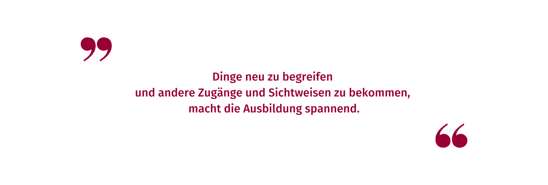 - Studierende schätzen die familiäre Atmosphäre und den kollegialen Umgangsstil und melden uns in strukturierten Evaluierungen eine sehr hohe Zufriedenheit zurück.